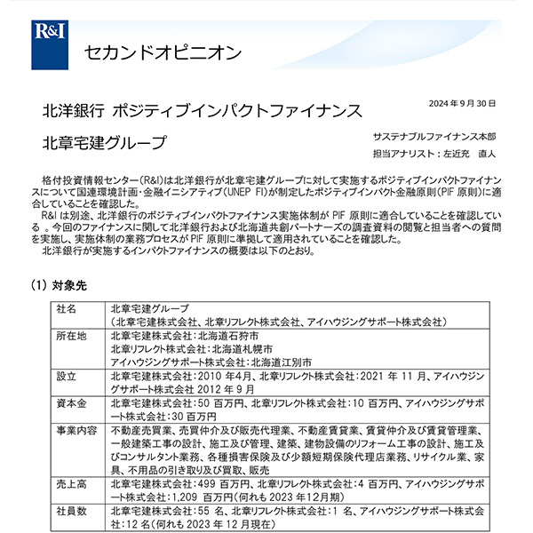 - 北洋銀行の協力によりSDGs宣言を行う