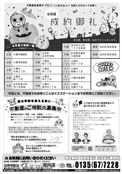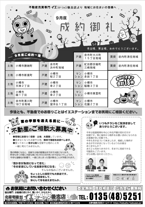 9月度も各店、多くのお客様とのご縁を頂きました。売主様・買主様、誠にありがとうございました。